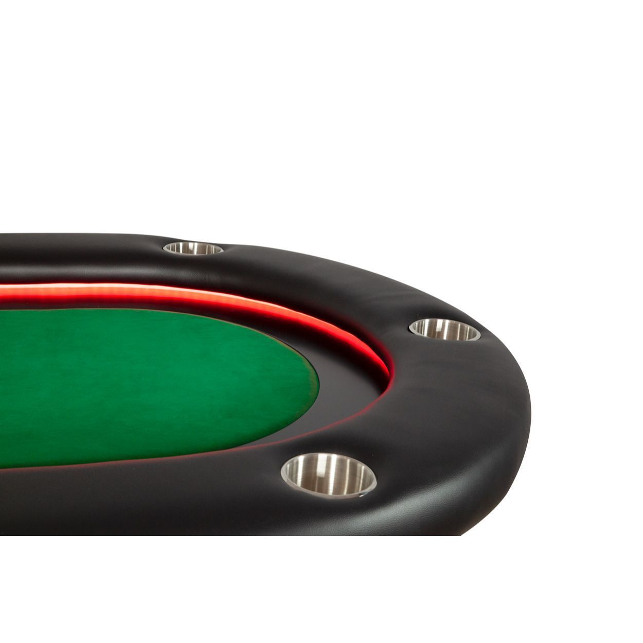 This Elite oval poker table by BBO just got a bright upgrade. This comfortable yet premium high stakes battle table is ready for anything poker night can dish out including darkness.